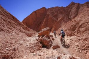 El viento constante y el terreno árido hacen que el paisaje parezca sacado de otro planeta. En este lugar se vive una experiencia más cercana al deporte outdoor, donde la corporeidad se convierte en la forma más directa de conocer San Pedro de Atacama.