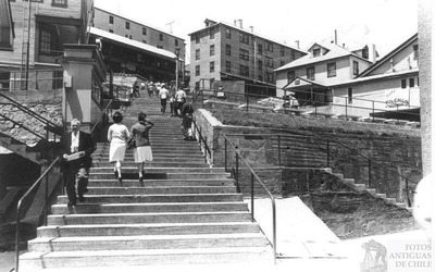 Construida sobre una empinada ladera, donde no existen ni calles ni automóviles. Toda la ciudad se conecta por medio de escaleras y senderos peatonales. La más emblemática de todas es la escalera central, que atraviesa Sewell de arriba abajo. A lo largo de sus tramos se encontraban zonas de descanso y accesos a los edificios principales.